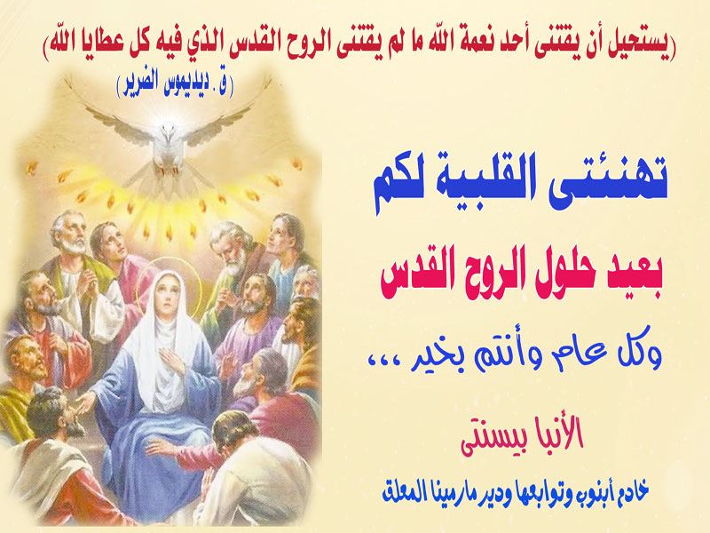الأحد 4 يونيو 2023 صلى صباح اليوم نيافة الحبر الجليل الأنبا بيسنتى القداس الإلهى بمناسبة عيد حلول الروح القدس بكنيسة القديسة العذراء مريم بمدينة أبنوب ، وألقى نيافته عظة عن عمل الروح القدس فى الكنيسة .